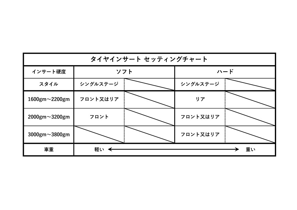 *タイヤにエア抜き穴加工をするとインサートのトラクション性能に効果的です。